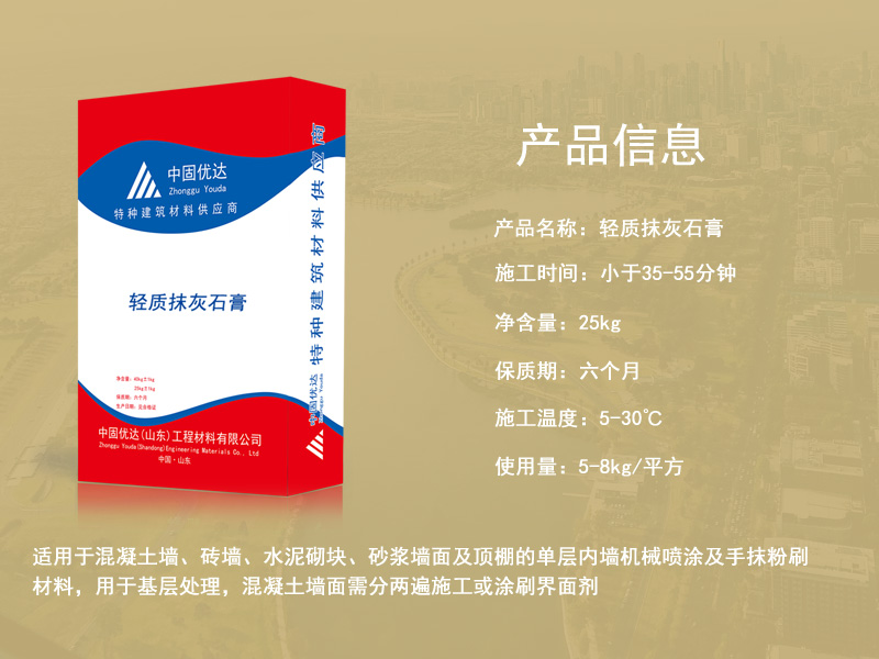 輕質(zhì)石膏抹灰砂漿也叫做輕質(zhì)抹灰石膏、輕質(zhì)粉刷石膏,是以高純度的半水脫硫石膏為主要膠凝材料,加入無(wú)機(jī)輕集料和適量的保水劑、緩凝劑等外加劑,經(jīng)工廠預(yù)混制成的成品抹灰石膏??蓮V泛取代傳統(tǒng)的水泥砂漿找平,用于室內(nèi)建筑內(nèi)墻和樓板的抹灰找平是建筑內(nèi)墻以及頂板常用的一種抹灰材料,可以代替水泥以及石灰砂等,在適用性非常廣泛,適用于任何墻體,克服傳統(tǒng)抹灰的缺點(diǎn),而且這種抹灰粘接力非常的強(qiáng),能夠與任何基材進(jìn)行粘接,不會(huì)受到厚度的限制。在流動(dòng)性以及飽水性上也是非常的,可以在0度進(jìn)行施工,這種石灰膏環(huán)保無(wú)味、抗裂性效果好,具有保溫隔熱的效果,能夠調(diào)節(jié)室內(nèi)的濕度、干度方便施工,節(jié)省工期和界面處理的工序以及材料使用,輕質(zhì)粉刷石膏,墻面沖筋找平。